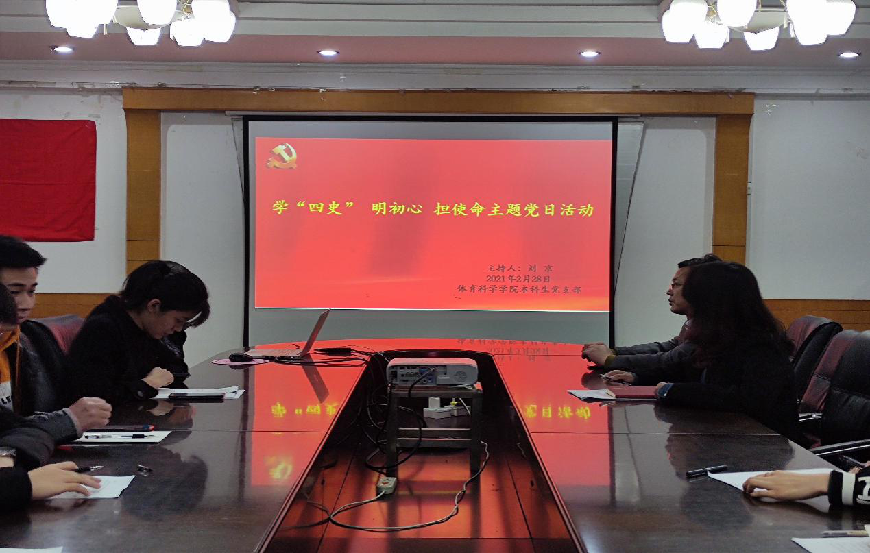 本科生党支部在学院一楼会议室开展“学四史 明初心 担使命”主题党日活动,本科生党支部书记刘京主持会议,全体党员参会。