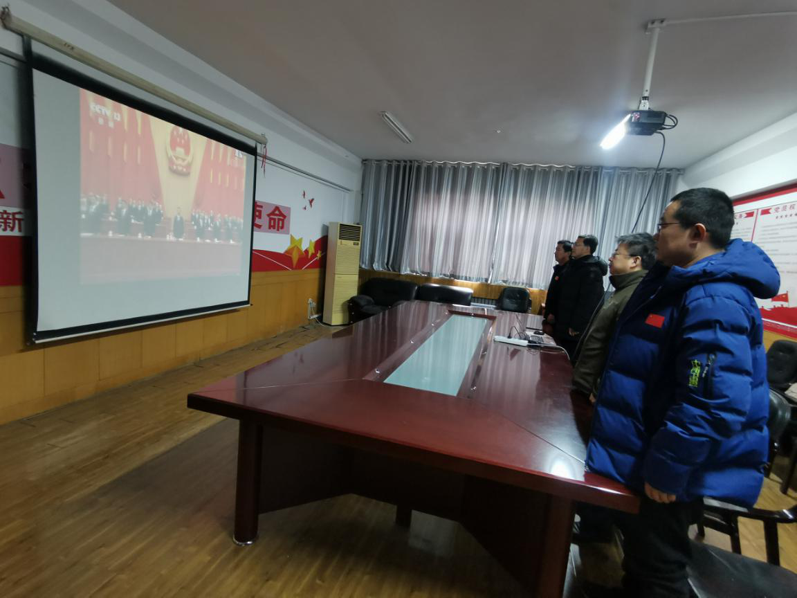 党委领导班子在党员活动室集中观看现场直播,同时全体师生党员居家同步观看了此次表彰大会的现场直播。