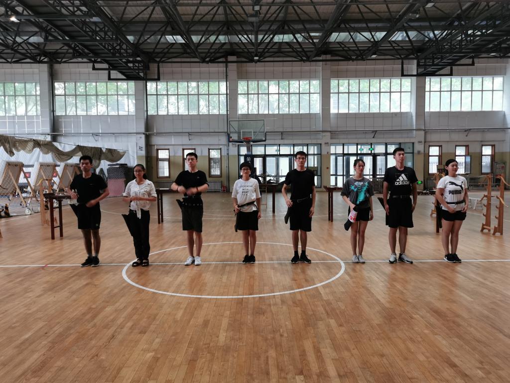 射艺队从八月五号开始,坚持每天在学院新球馆的射箭场地展开常规训练。