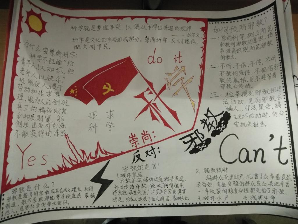 举办了以“崇尚科学,反对邪教”为主题的手抄报活动。