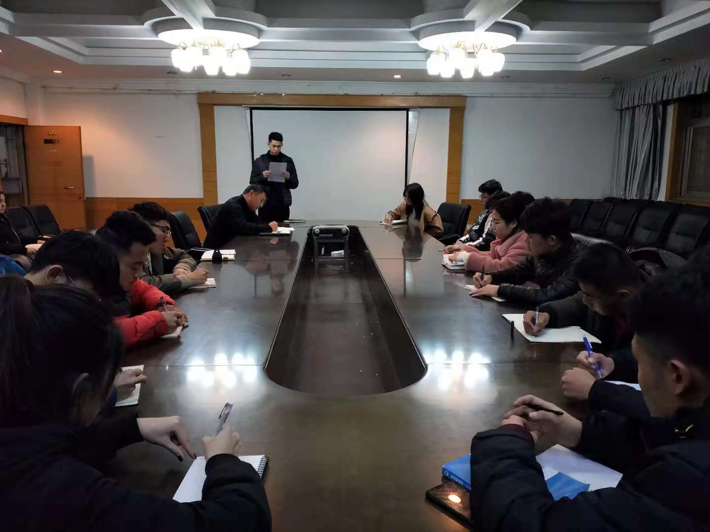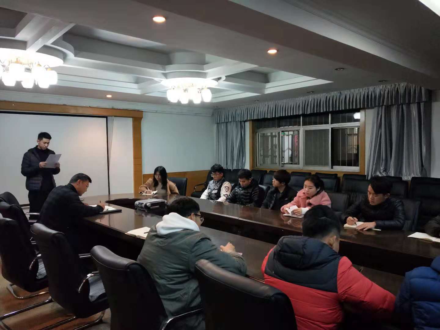 作为班团一体化的试点院系,每位团支部书记都要动员支部成员积极发挥自己的正能量,努力向团组织靠拢。随后,对近期新媒体、反邪教等工作进行了部署。希望各班团支书能够在接下来的时间积极开展工作,按时有效的做好每一项任务,为班级荣争荣誉。