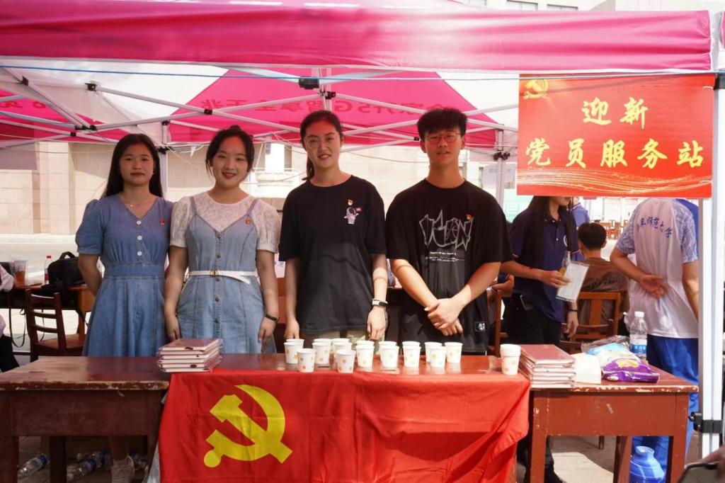学生党员早早的来到迎新站点,学生党员统一佩戴党徽,精心布置迎新站点,亲力亲为,彰显学生党员干部先锋模范作用。学生党员们在迎新站点设立党员迎新服务站,在桌上整齐摆放纸杯,为各位新生及家长,工作人员提供饮水服务。帮助新生搬运行李,引导新生及家长走正确路线,按照流程领取相应物资,办理入学报到、宿舍入住等工作。在学生党员的引导下,迎新生的各项工作井然有序的进行,尽管整个迎新工作复杂繁琐,但党员同志们始终如一的坚守岗位,做到规范有序,使每位同学都感受到了独属于曲园的温暖,展现了对新生的热烈欢迎和殷切期盼。