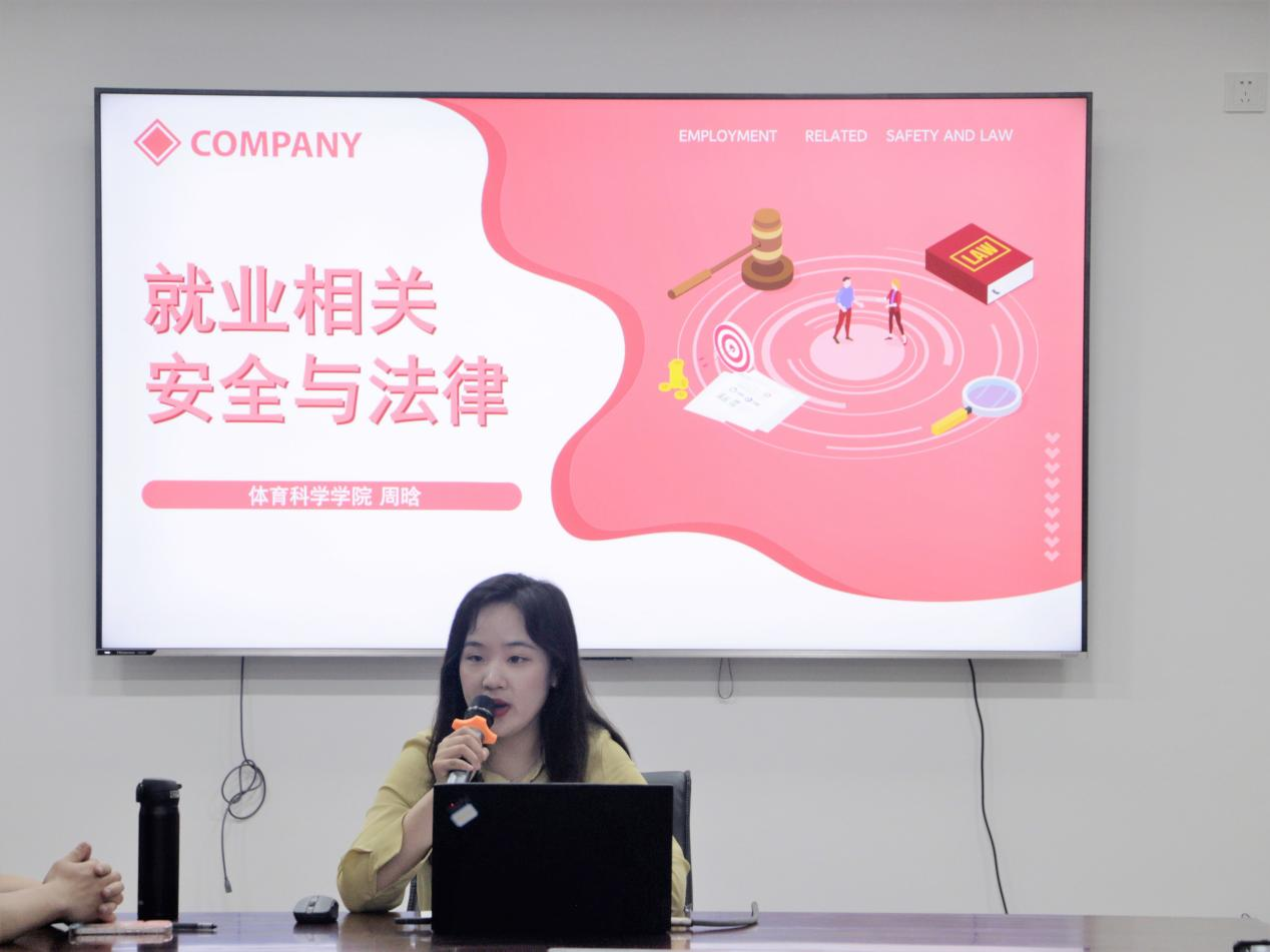 于教学楼会议室开展就业相关安全与法律讲座。本次讲座由辅导员周晗主讲,2019级毕业生参加,讲座由2019级辅导员唐海峰主持。