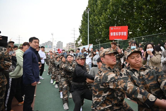 2022级新生军训拔河比赛在新校区西操场正式拉开帷幕。本着“友谊第一,比赛第二”的原则,整场比赛进行有序。经过激烈的耐力、体力较量,最终国产视频