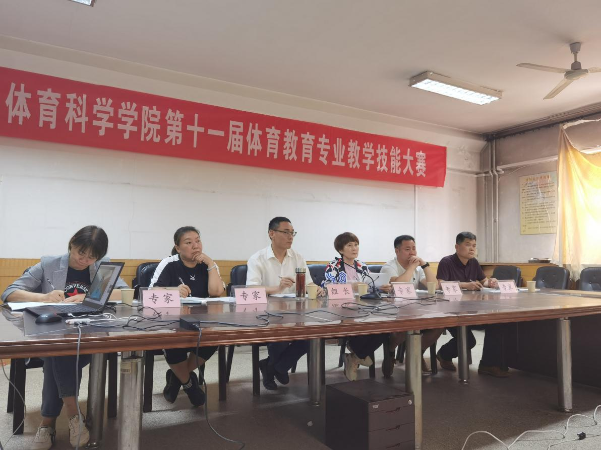 附属中学张庆燕、吴展,教育学院张雨强、徐瑞老师,体育科学学院孙月霞、周芳六位教学专家担任评委,共有20名体育教育专业的同学参加了比赛。