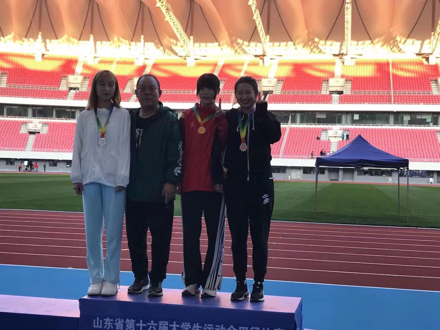 山东省第十六届大学生运动会田径项目比赛于10月14日落下帷幕。在为期五天精彩紧张的比赛过程中,我院田径队克服困难,不畏强手,勇敢拼搏,再续辉煌。期间共荣获金牌1枚,银牌7枚,铜牌3枚,一举夺得男子团体第4名、女子团体第4名,团体总分第4名,以总分180分取得历史性突破,并荣获体育道德风尚奖。