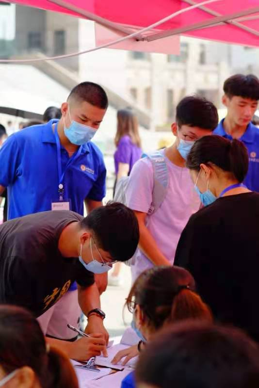 9月12日我院迎新工作在孔子文化广场圆满完结,在之前,迎新报到现场党员同志们胸前佩戴党徽,主动亮明身份,以积极认真的态度对待各个迎新点的值班工作,用最热情的服务迎接每一位新生的到来,用实际行动践行党员的责任与义务,为新生树立好榜样。
