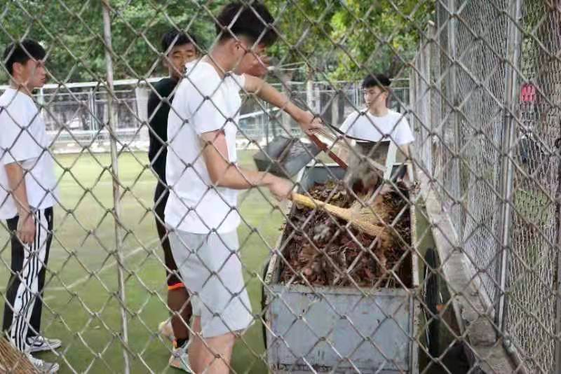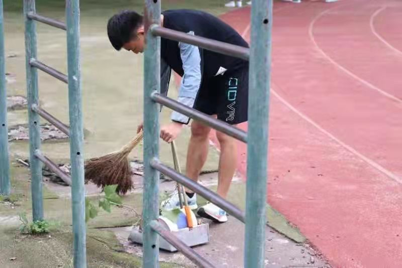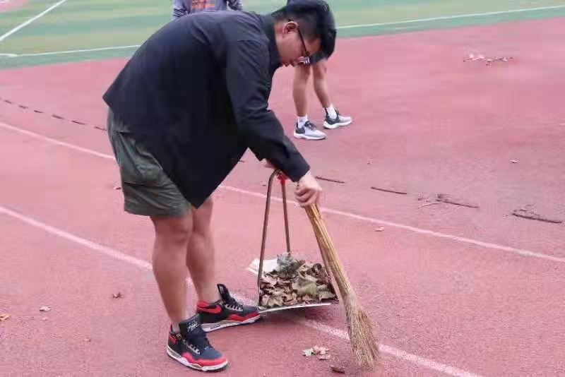同学们相互协作,捡拾垃圾杂物,对南操场和教学楼周边等重点区域的卫生环境进行了全面清理。