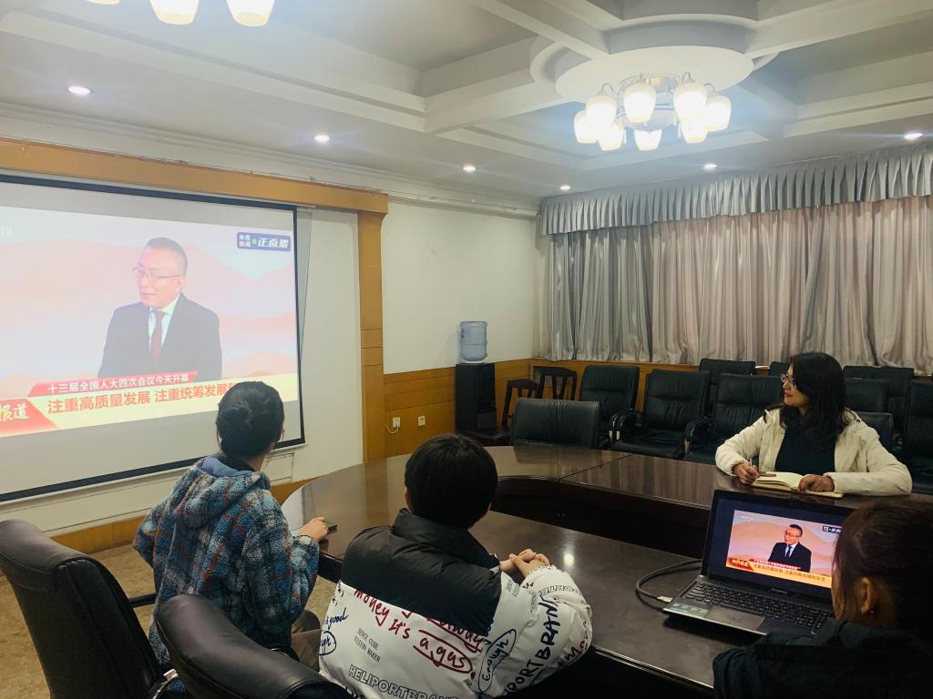 组织辅导员老师和部分学生干部在学院一楼会议室集中观看十三届全国人大四次会议开幕式。