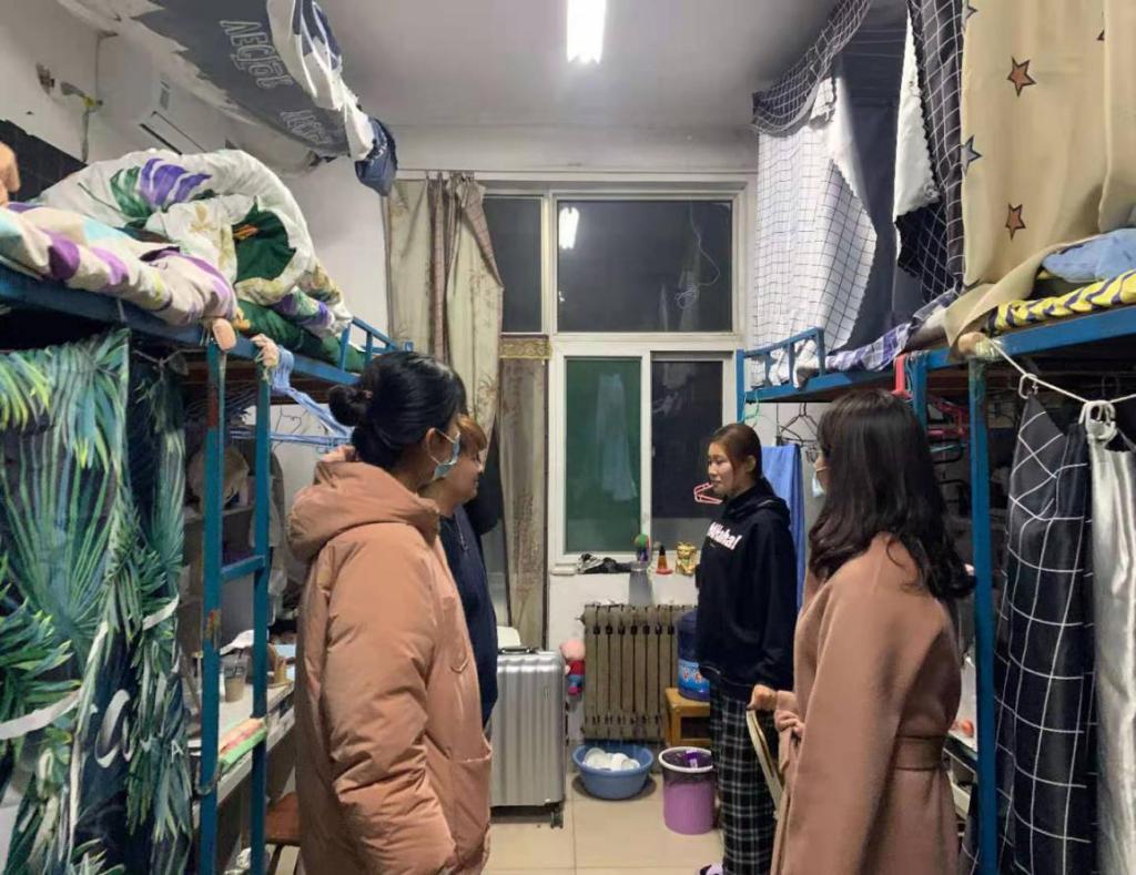 辅导员们查看门窗、床柜、爬梯是否有损坏以及其他可能存在的安全隐患,重点检查了是否存在违规持有大功率电器、空酒瓶和烟头等安全隐患问题以及卫生情况。在认真检查和仔细了解了各宿舍的基本情况之后,并强调同学们一定要做好健康防护措施,开学后14天封闭式管理,外出要及时报备,非必要情况不得离开曲阜。最后提醒同学们返校后也要每天完成智慧曲园打卡任务,打扫好宿舍卫生,严格执行学校晚就寝熄灯制度。