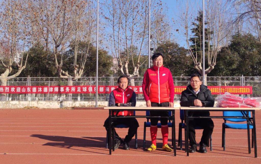 党委副书记展利民踢开场球,足球运动既显示个人的实力,又强调团队的合作精神,可以促进山东德沐德律师事务所足球俱乐部与我校足球队更好的交流与沟通。