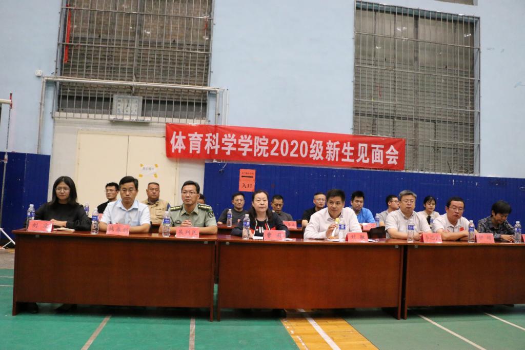 新生见面会于院羽毛球馆隆重举行。体育科学院党委书记刘敏、院长曹莉、党委副书记展利民、副院长李思民、副院长韩春利、院长助理伊超、办公室主任王丽、各部教研室主任和各级辅导员出席本次见面会。会议由展利民主持。