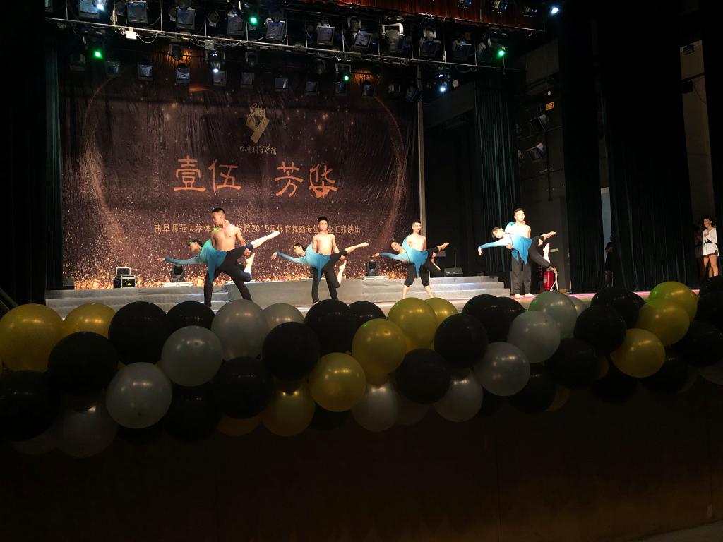 在新大学生活动中心成功举办了2019届体育舞蹈专业毕业汇报演出暨壹伍芳华 礼赞新中国•庆祝中华人民共和国成立70周年文艺汇演。晚会开始前先播放了2019届体育舞蹈班提前录好的毕业视频,视频记录了他们大学四年的点滴以及对母校、对学院、对老师的感谢与对美好未来的期望,熟悉的照片回放感动了全场。演出由舞蹈班全体同学带来的开场舞《pick me》拉开了序幕,表演从柔美的瑜伽、古典舞到激情的竞技健美操和爵士舞,从优雅的摩登舞到嗨翻全场的拉丁舞和肚皮舞,除此之外还有乐器合奏和歌唱等节目,充分展现了同学们的多才多艺。此外,因为今年是建国70周年、五四运动一百周年,同学们还特别准备了非常具有本院特色的军舞《给青春理个短头发》、摩登舞《我和我的祖国》以及拉丁舞《黄河》等节目献给祖国。本次演出表演丰富多彩、精彩绝伦,同学们在欢快的节奏、跳跃的音符中展现出大学生的青春与活力,演出的最后伴随着一首《再见,再见》,在毕业生和老师们的合影留念中落下了帷幕,所有的感动、不舍、憧憬、祝福与期盼都定格在了这一个个美好瞬间。