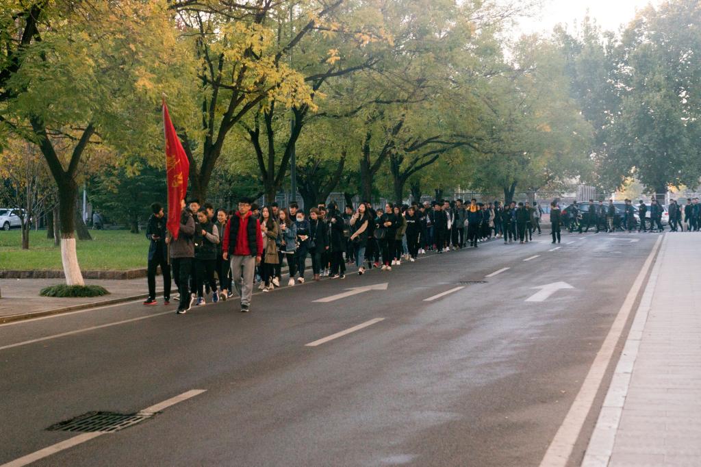 院楼前集合,由学生会办公室主任康朝阳说明本次活动流程及注意事项。本次活动事项包括了人身安全,交通安全,服从指挥及文明旅游四个部分。活动开始,同学们排着整齐的队伍有序前进。到达景区后,同学们在学生会成员的带领下进行参观孔庙。参观途中,大家认真聆听导游的讲解。当到达大成殿时,同学们纷纷在殿前拍照留念。接下来,同学们前往参观了孔府与孔林。三孔参观完毕后,同学们原路安全返回学校。