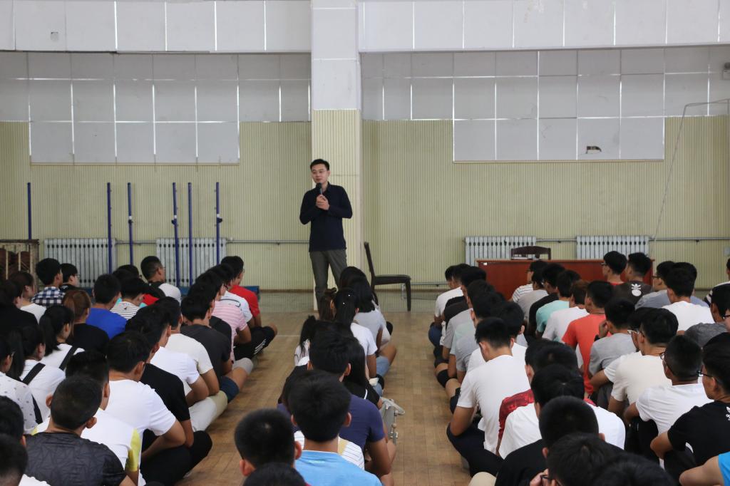 新生教育会议在篮球馆举行。参加本次会议的主要成员有辅导员梁贺涵老师,团委副书记张庆义及2016、2017级全体学生。本次会议由梁贺涵老师主持。