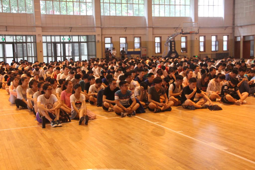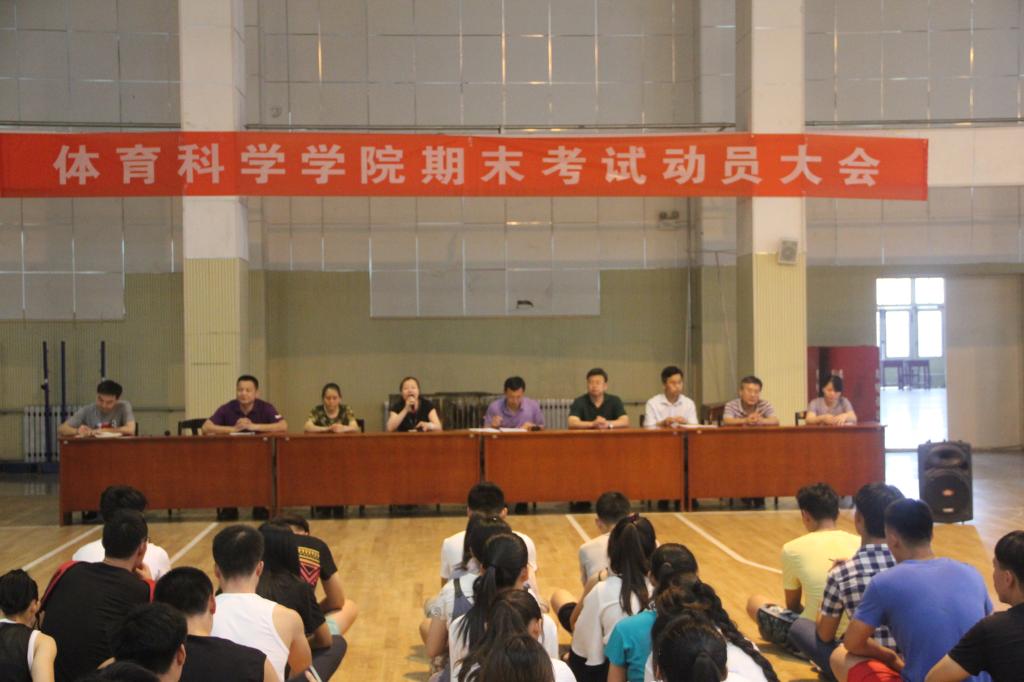 于院楼篮球馆内召开期末考试动员大会。出席此次大会的成员有国产视频