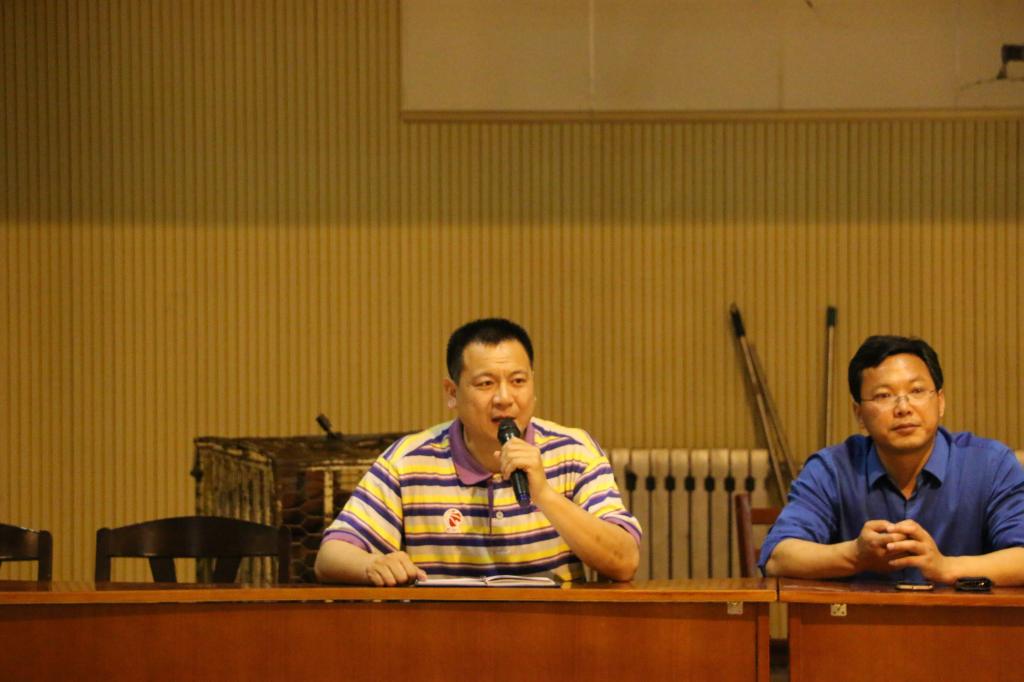 在院楼篮球馆内召开学生干部会议。参加本次会议的主要成员有党委副书记展利民老师,团委书记赵峰老师,国产视频