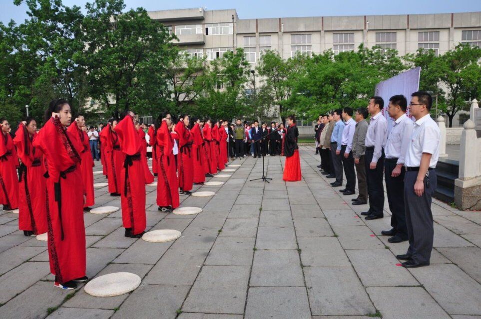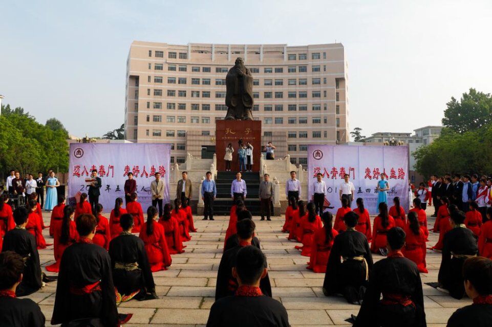 在孔子文化广场举办五四成人礼活动。出席本次活动的主要领导有党委常委、副校长辛杰、宣传部部长宋德昭、学生工作处处长杨永明、保卫处处长左兴才、工会主席王万民,我院党委书记展利民老师,团委书记赵峰老师,辅导员梁贺涵老师出席此次活动。本次活动由黄江滔主持。