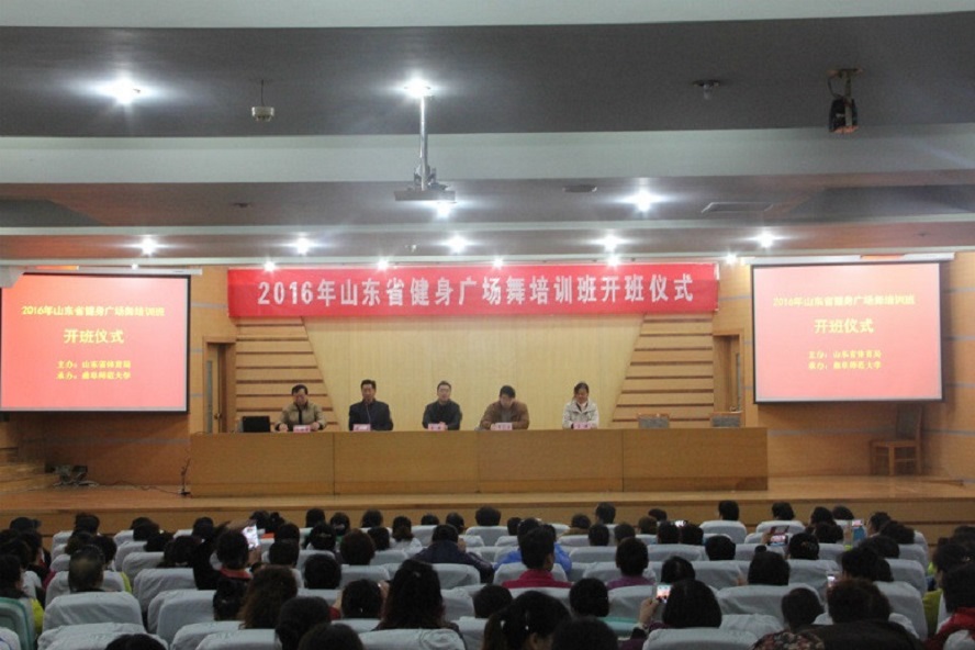 11月18日上午8:00,山东省首届健身广场舞培训班开班仪式在孔子会堂举行,参加本次大会的有山东省体育局群体处副处长吕强,党委书记荆兆清,国产视频