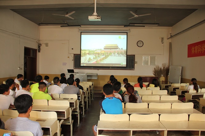 党总支副书记展利民、辅导员梁贺涵带领学院部分学生在209教室,观看纪念抗日战争胜利及世界反法西斯战争胜利70周年阅兵仪式,共同感受祖国母亲强大的国威。