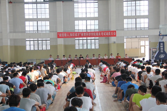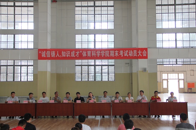 在篮球馆举行期末考试学生动员大会,出席本次大会的有学院党总支书记荆兆清,院长曹莉,副院长刘洪珍、廖志强,党总支副书记展利民,团总支书记赵峰及各教研室主任。大会由赵峰老师主持。