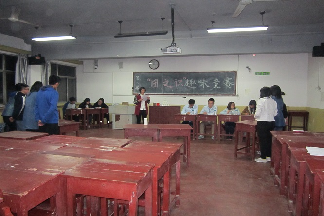 于院楼401教室举行了第三届“团之识”趣味知识竞赛。 本届“团之识”知识竞赛由团知识竞答、团知识抢答、运气比拼、叠罗汉竞赛、抽签选题比拼五个环节组成。本次比赛共有11支来自我院各年级的队伍参赛。