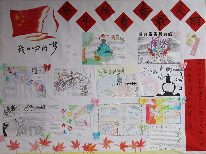大厅的宣传栏上张贴着一幅幅图文并茂、色彩绚丽的手抄报,不同的画面展示了同一个梦想——我的中国梦。文字与图画的完美结合彰显了作者们心中精彩纷呈的梦想。其中,最为惹眼的是一幅名为“我的青春我做主”的手抄报,不仅充分体现了作者对中国梦的理解,也对中华民族不朽的民族精神予以诠释。