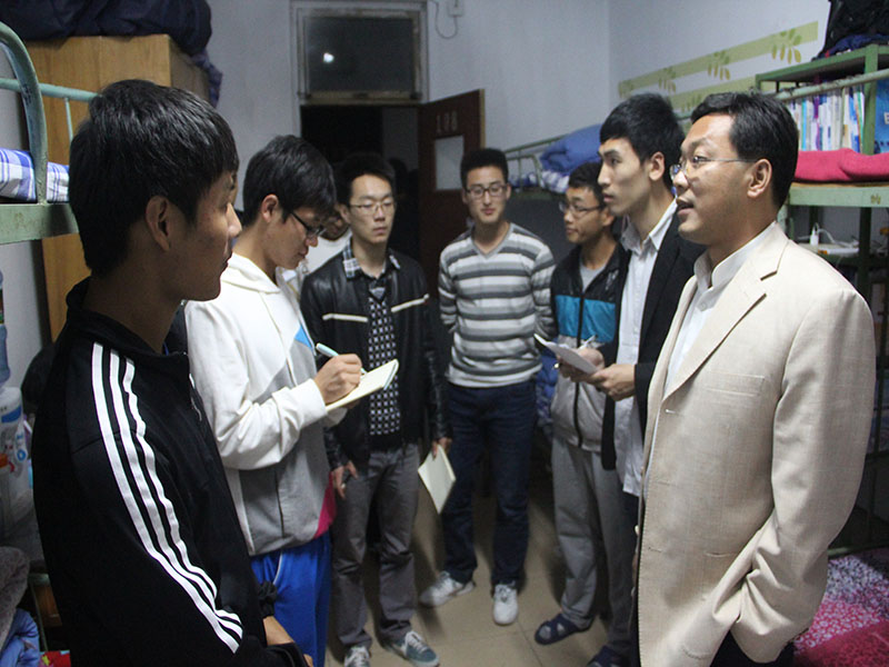 10月26日晚9:30,新生宿舍检查工作在西公寓一号楼、三号楼、六号楼及北公寓展开。党总支副书记展利民与学生会主要成员参加了此次检查工作。