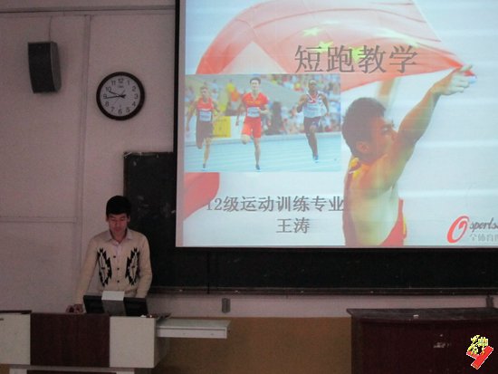 选手上场时先进行一番自我介绍,随后进入讲课模式。参赛选手们对课堂内容的讲述以PPT的形式展现给大家;为了让大家更加清晰的了解本节课的内容,并在课堂的中间部分插播了视频。PPT与视频的交错讲课不仅体现了选手们的创新意识,又丰富了课堂内容;选手们与观众的精彩互动又更加调动了大家学习的积极性,充分体现了“老师教学,我们参与”的教学模式。