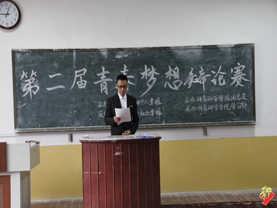 举办的旨在提高同学们综合素质的 “青春梦想辩论赛”决赛于11月2日上午在院楼210教室圆满结束。本次比赛到位评委有学院团总支书记赵峰以及学生会成员。