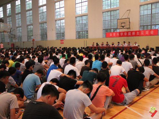 于院内篮球馆召开2013级新生见面会,院长曹莉,副院长刘洪珍、廖志强,党总支副书记展利民,团总支书记赵峰,辅导员王军、李娜以及2013级全体新生出席了本次会议。会议由赵峰老师主持。