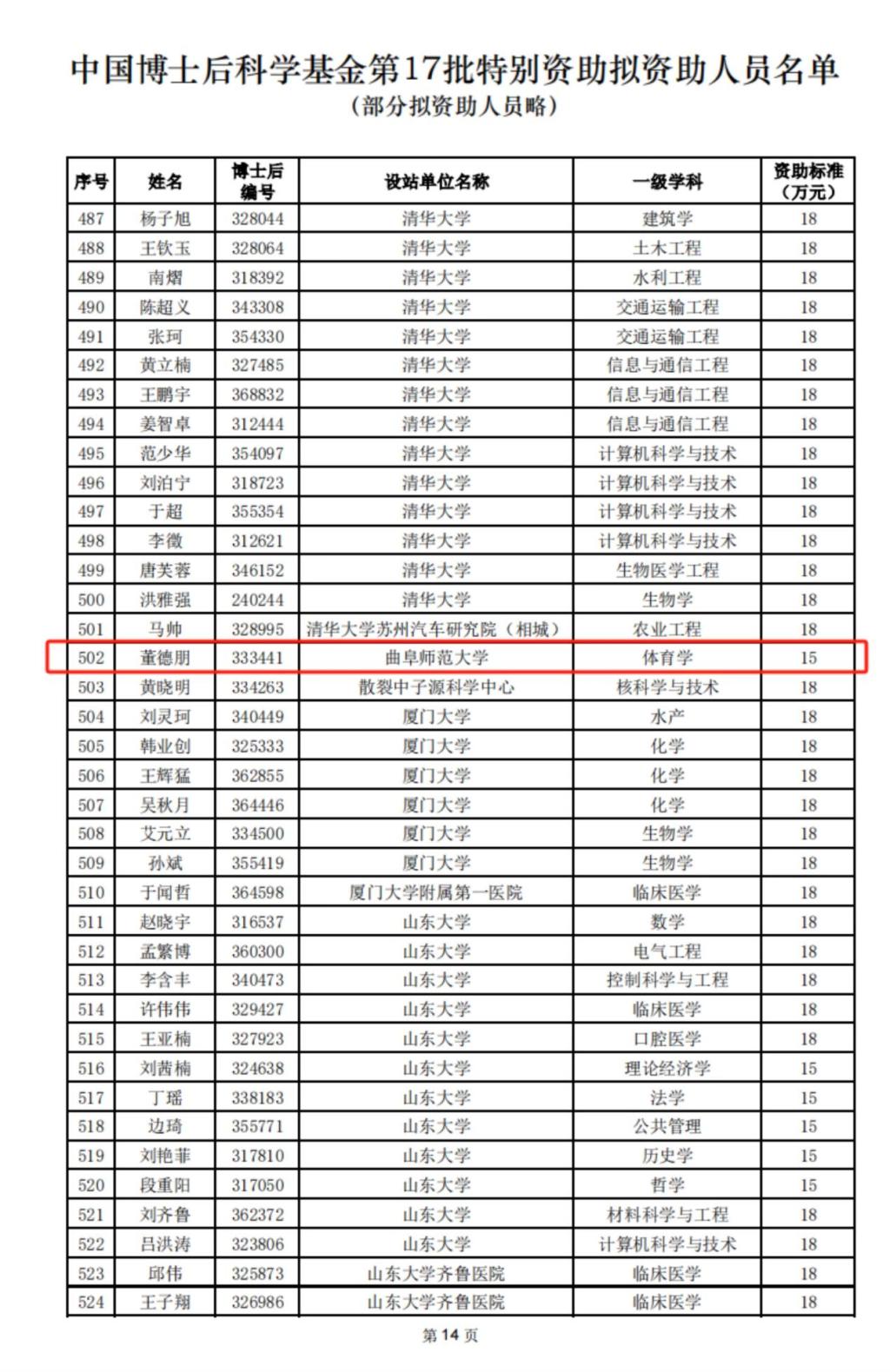 姜付高教授课题组博士后、青年教授董德朋老师顺利入选(全国体育学仅入选3项),这是国产视频