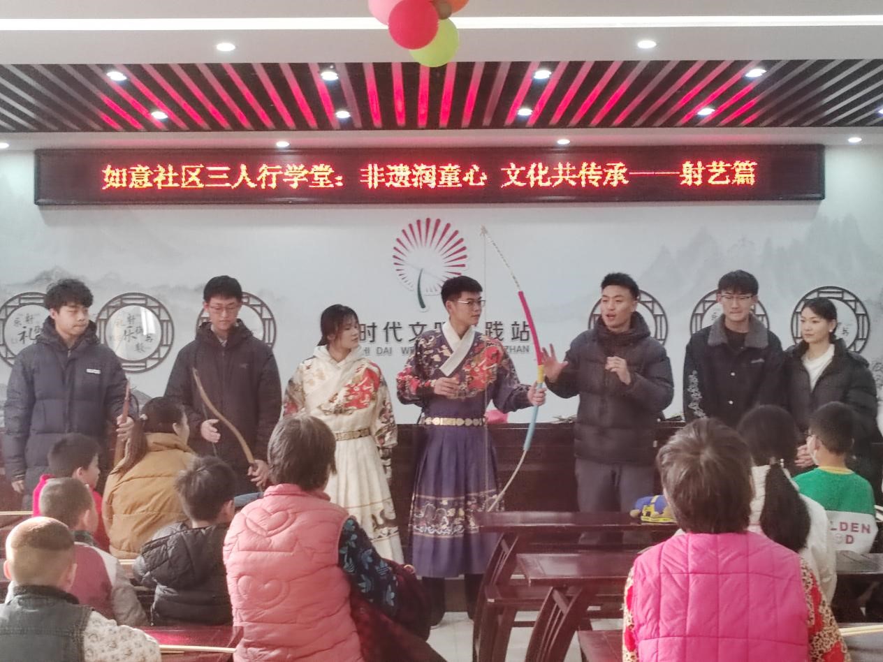 “以青春之力,践社区之行”实践队伍于1月13日至16日前往曲阜市如意社区,进行射艺及武术教学,让小朋友们了解我国传统武术文化,增强自身素质,丰富课外生活,同时增强社区青少年凝聚力。活动过程中,实践队员积极投身至基层治理,承担社会责任,学有所用,为社区基层治理奉献青春力量。