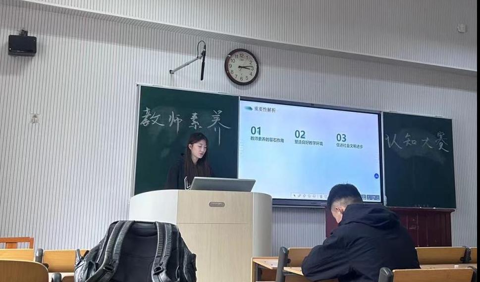 比赛过程中,参赛选手们展现出了对教师素养深刻而多元的理解,从教育理念到教学方法,从职业道德到课堂管理,他们的阐述展现出学生们扎实的知识储备和独特见解。这次大赛不仅是知识的比拼,更彰显了学院对培养高质量教育人才的重视,为未来教育之路注入了新思想,也为学生提供了展示与交流的优质平台。