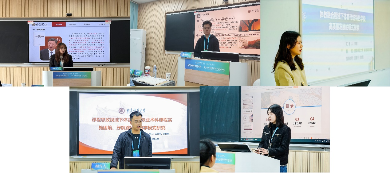 博士生也展现出“诲人不倦,学而不厌”的学术风采。在“传统体育文化与民族共同体研究”分会场,2023级博士研究生马晓雪作了题为“精神标识·话语场域——中华武术铸牢中华民族共同体意识的意义建构”的报告;在“乡村振兴与户外运动产业可持续发展研究”分会场,2024级博士研究生程茂滕作了题为“乡村体育旅游赋能目的地可持续发展的作用过程与实现路径”的报告;在“体教融合与青少年发展研究”分会场,2024级博士研究生李慧作了题为“体教融合视域下体育传统特色学校高质量发展的模式探索”的报告;在“新质生产力与体育产业创新发展研究”分会场,2024级博士研究生栾传凯作了题为“新质生产力推进体育产业发展理念革新的现实审视与实现进路”的报告;在“体育课程改革与教育模式创新研究”和“运动生物力学与运动康复研究”分会场,2024级博士研究生王艺霏作了题为“课程思政视域下体育教育专业术科课程实施困境、疏解路径与教学模式研究”和“青年男性不同步态下肢肌力关键参数与敏感性分析”的报告。