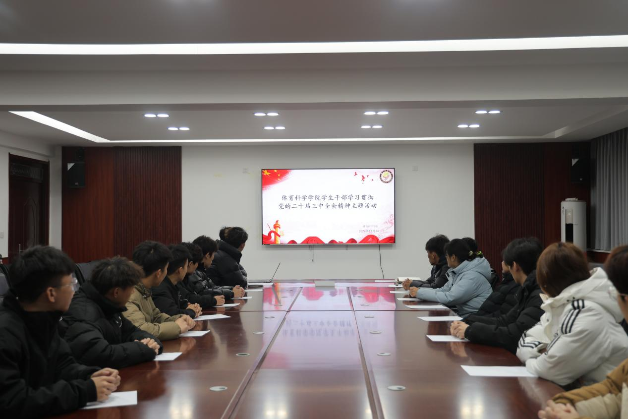 为引导学生干部深悟透党的二十届三中全会精神,加强青年学生思想政治教育和理想信念培养,更好地用党的创新理论武装青年,切实增强学院师生的责任感、使命感与凝聚力,体育科科学院于11月24日在一楼会议室开展“学生干部学习贯彻党的二十届三中全会精神”主题活动。第七届团委、学生会骨干成员参加培训。