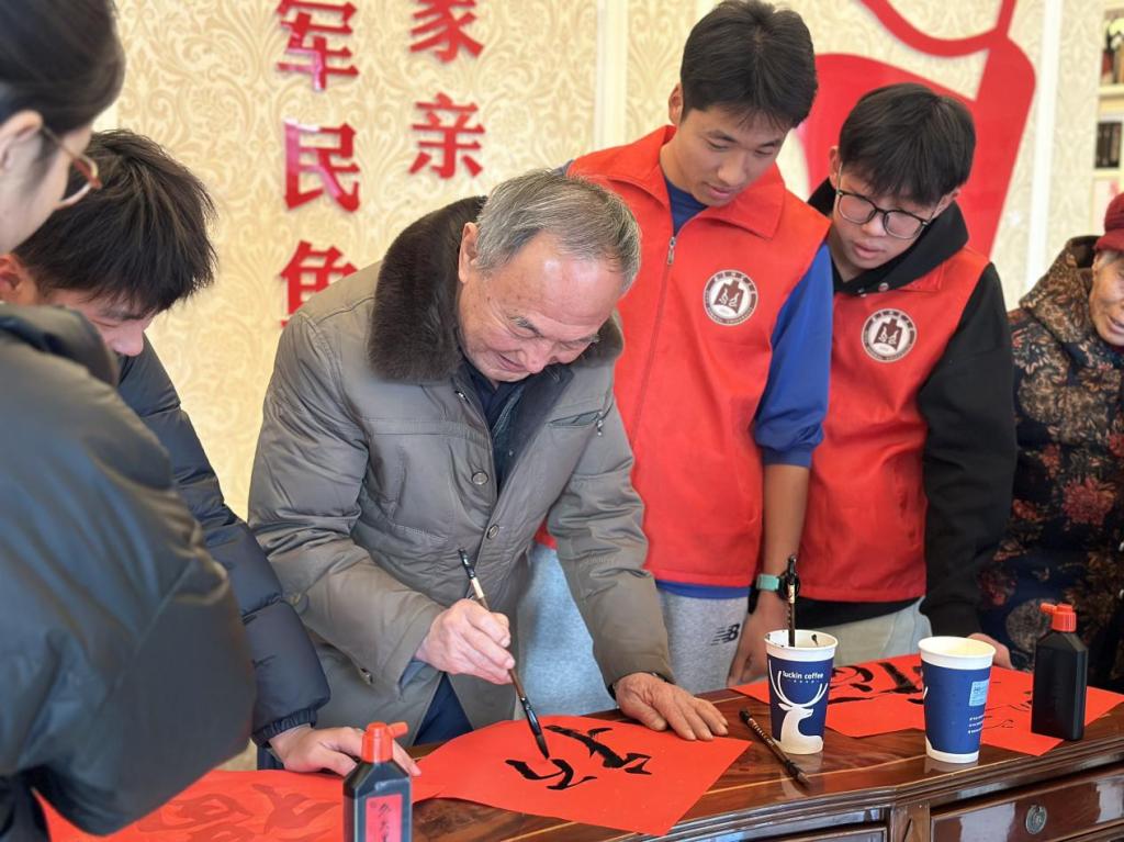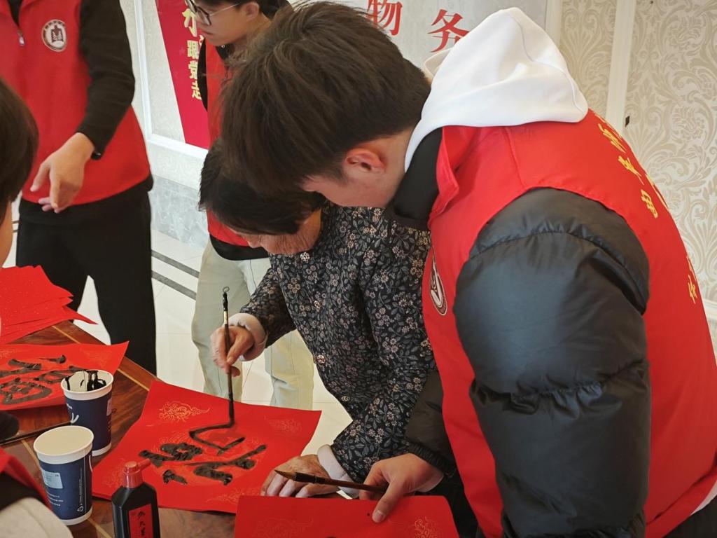 (图片为实践队队员和居民写福字)