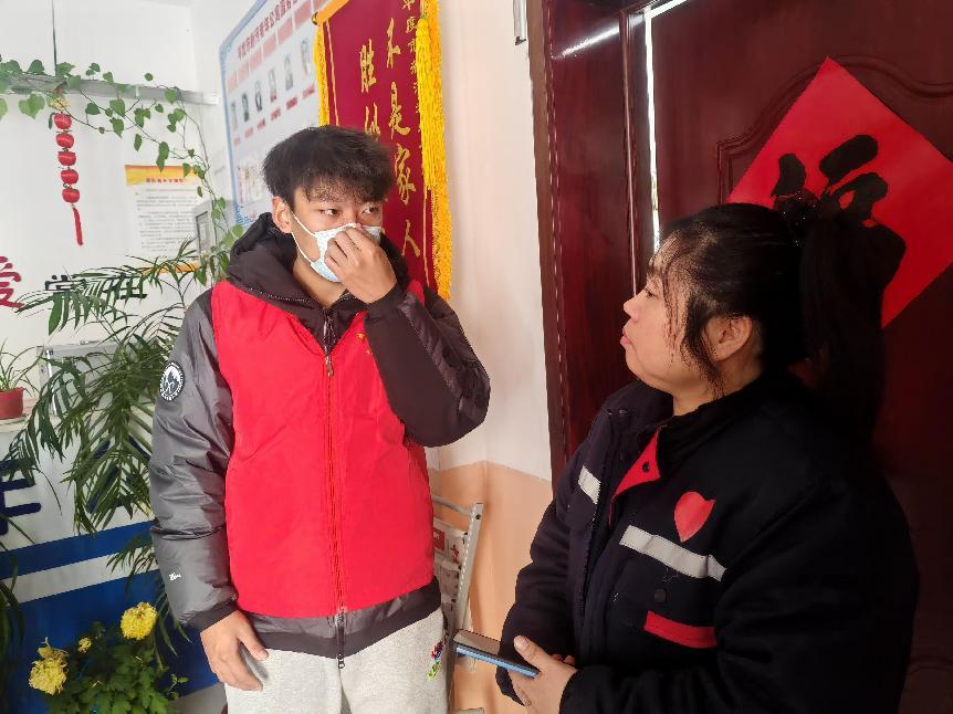 图为实践队员与当地居民交流
