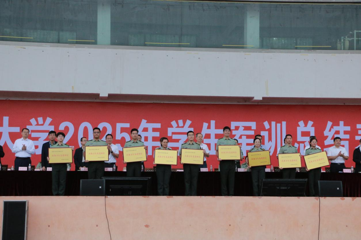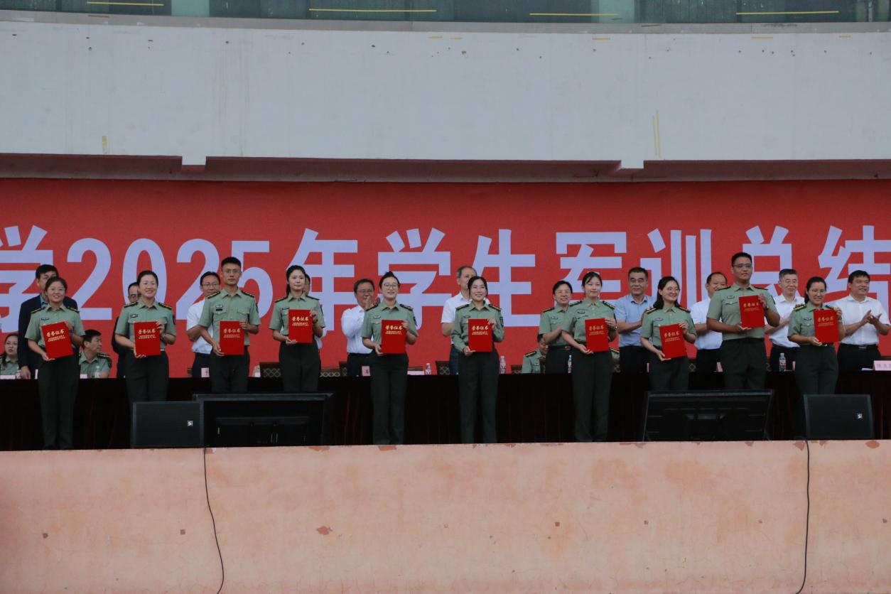 荣获“2025年学生军训工作优秀单位”“2025年学生军训工作内务卫生先进单位”“2025年军训拔河比赛一等奖”“2025年军训歌咏比赛三等奖”“2025年军训演讲比赛二等奖”。其中,2025级辅导员栾永鑫获得“军训优秀指导员”荣誉称号,部分教官和新生分别获得“优秀教官”和“优秀标兵”荣誉称号。