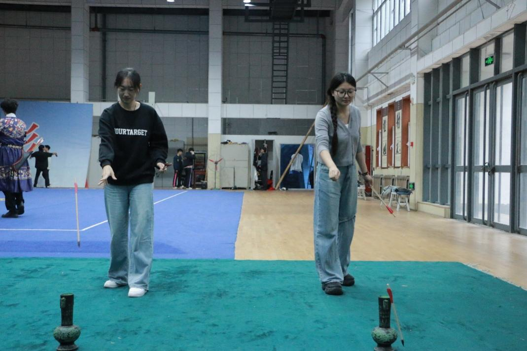 中华传统体育文化体验活动”。射艺和投壶是中华传统体育文化中重要的组成部分,此次活动通过教学和体验使同学们深入了解“射艺”和“投壶”的文化价值和精神内涵,让传统文化在校园内蓬勃发展。