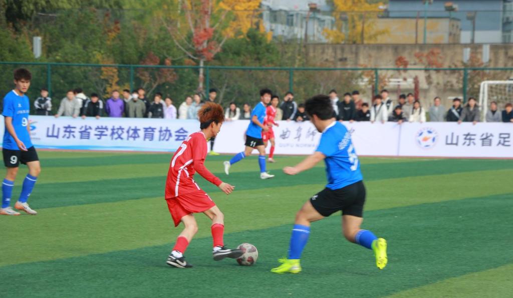 党委副书记马振华出席赛事活动。曲阜、日照两校区13个学院联合组建的校男子足球队(甲组、非体育专业)在比赛中取得优异成绩,继11月3日客场战胜枣庄职业学院后,再次以2:0击败山东交通职业学院,实现开赛以来的两连胜。