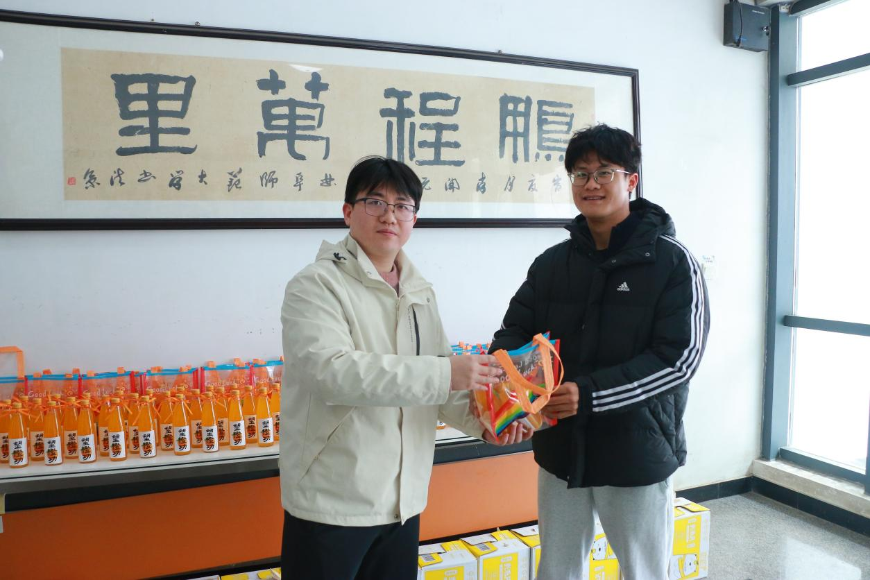 现场整齐码放着包装好的礼包,每份都包含着祝福考研学子“望橙功”的橙汁。发放前,国产视频