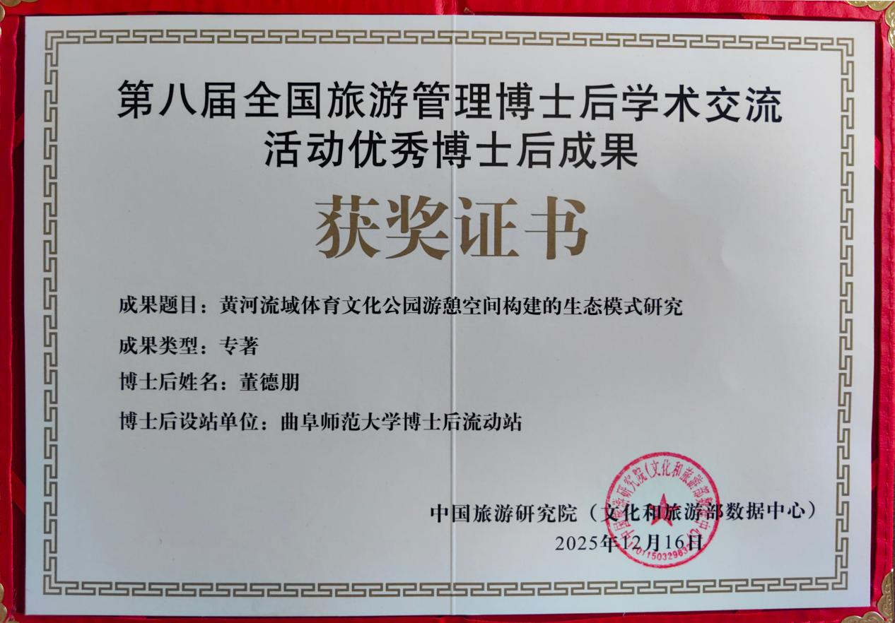 中国旅游研究院(文化和旅游部数据中心)作为文化和旅游部直属的专业研究机构,自2017年被科技部列入中央级科研机构序列以来,一直承担着国家旅游与文化发展的核心智库职能,其主办的博士后学术交流活动优秀成果奖已成为国内旅游管理领域高层次人才成果展示的顶尖平台,申报类型包括:学术论文、学术专著、博士后研究报告。本届评选竞争激烈,专著类全国仅评出三项优秀成果,充分体现了该奖项的权威性与含金量。
