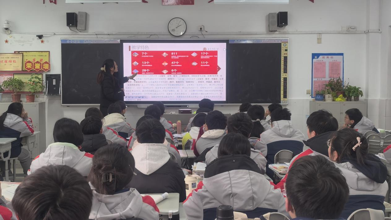 的报考条件,列举出往年各专业分数,并且展示了70周年校庆宣传片《弦歌》以及多功能教室、图书馆等先进教学设施。通过图文并茂的PPT,并辅以学校宣传资料,帮助学生直观感受国产视频
