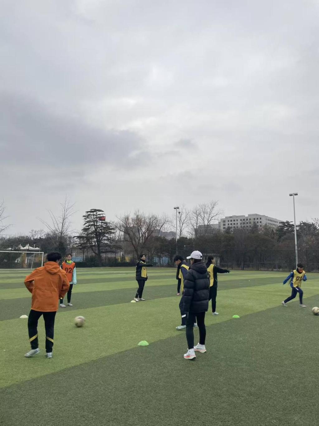 针对有一定基础的学生,实践队则聚焦战术配合与实战应用,组织开展小型分组对抗赛。队员们化身战术指导师,在场边实时讲解攻防节奏、跑位技巧与团队协作要点,引导学生在实战中理解战术意图,提升临场应变能力。此外,实践队还专门设置足球规则普及、运动损伤防护等专题分享环节,结合自身训练与比赛经历,为学弟学妹们答疑解惑,传递科学训练理念与体育拼搏精神。
