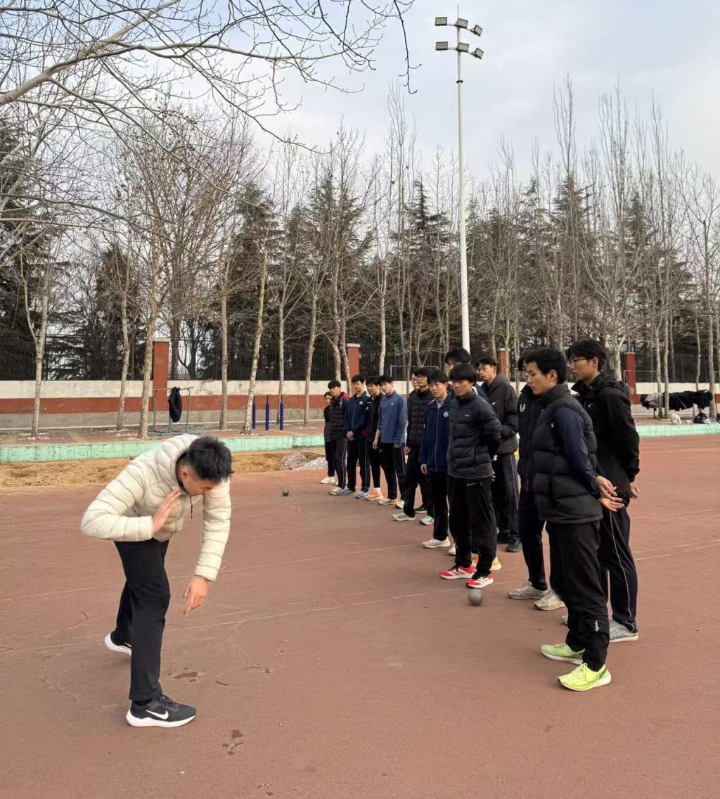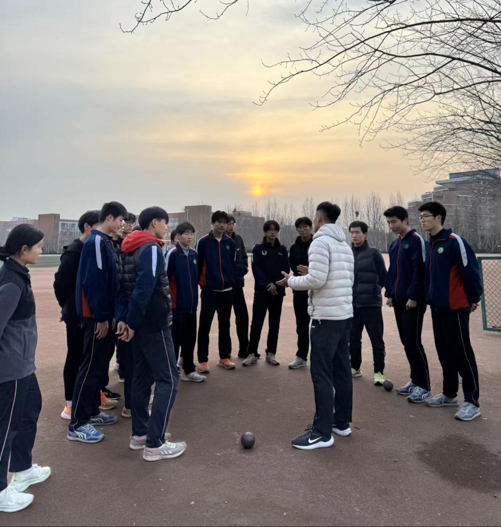 在分组练习环节,队员们走到学弟学妹身边,一对一纠正行为偏差,耐心解答技术疑问。他们既肯定大家的进步,又精准指出不足,帮助学弟学妹们逐步建立起规范的动作模式。不少同学在指导后表示,原本模糊的技术要点变得清晰,对铅球项目的理解也更深入了。