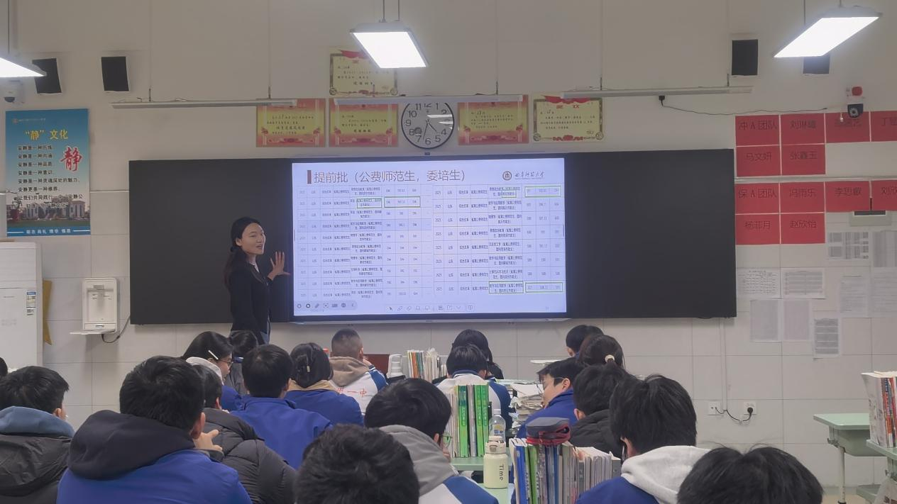 近年在提前批招生的专业及录取分数线,帮助同学们建立清晰的报考目标。队员们用数据说话,让学弟学妹们直观感受到:以滕州一中学子的实力,报考公费师范生具有明显优势,既能进入国产视频