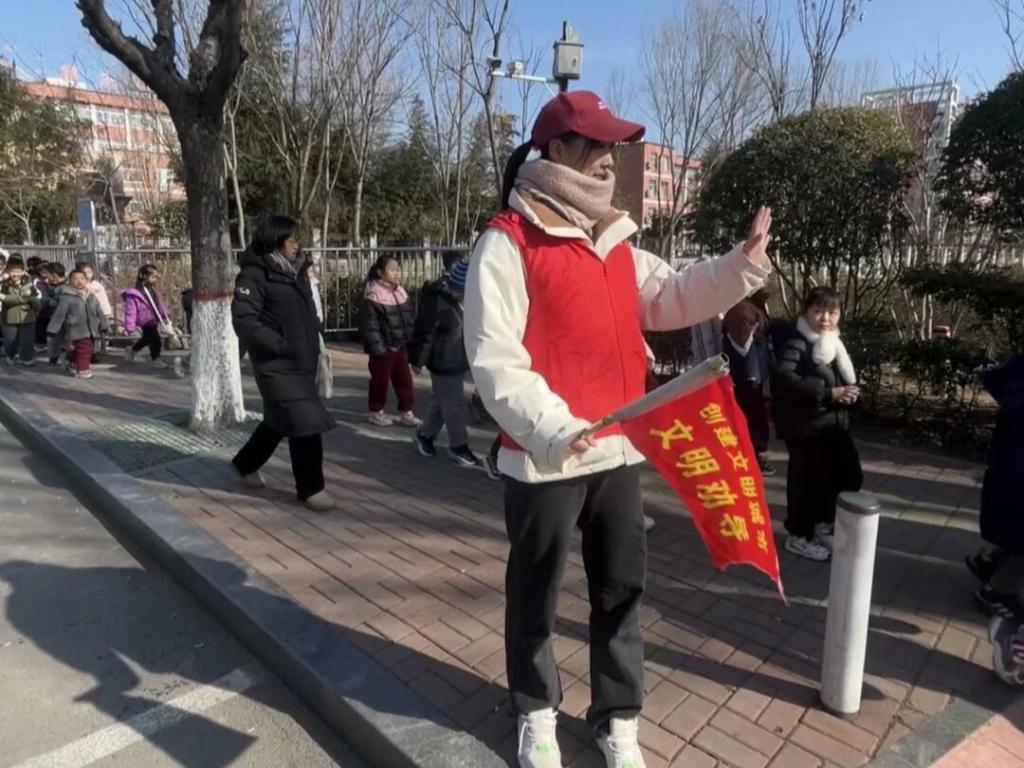 “先锋跃动,体健筑梦”实践队成员于1月25日,在济宁市泗水县洙泗小学参与家长志愿者活动,以实际行动守护校园秩序与学生安全。