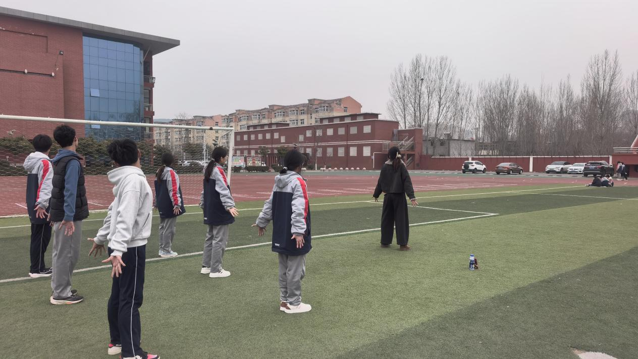 在教学实践环节,实践队员面对整齐列队的高中生,展开了系统化的“八段锦”教学。每一个动作都经过细致分解和反复示范,同时注意纠正动作细节,在舒缓的音乐伴奏下,学生们逐渐掌握了“八段锦”的基本套路。通过“摇头摆尾去心火”等动作的反复练习,学生们不仅体验到了传统养生功法的独特魅力,更在实践中领悟到中华武术“刚柔并济、形神兼备”的文化精髓,感受到身体与心灵的和谐统一。活动过程中,学生们专注的神情、规范的动作,展现出对传统体育文化的浓厚兴趣和认真学习态度。