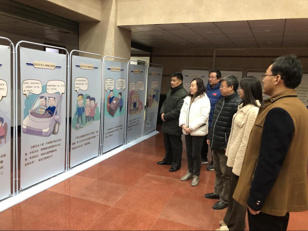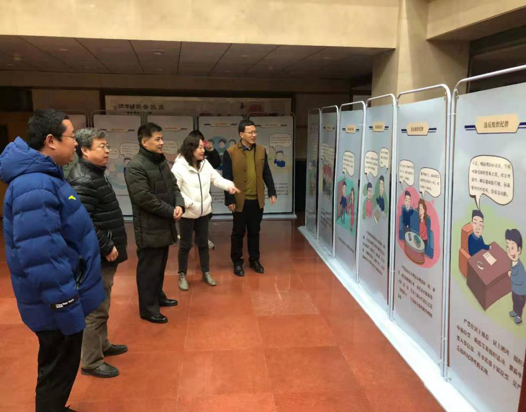 主要领导一行来到科技实验楼展览区,集体参观由学校纪委、监察专员办公室举办的《红线·漫画说纪》特别展。